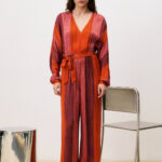 Ολόσωμη φόρμα με V λαιμόκοψη και δετή ζώνη