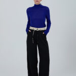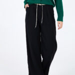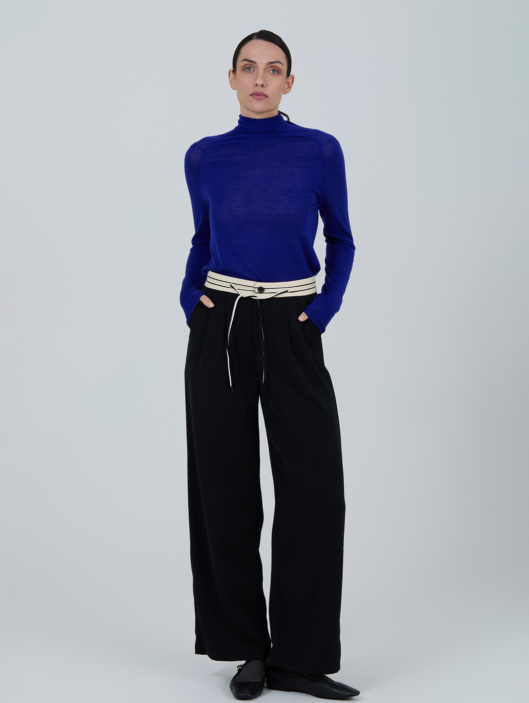 Φαρδύ παντελόνι με αντίθεση στη μέση και κορδόνι