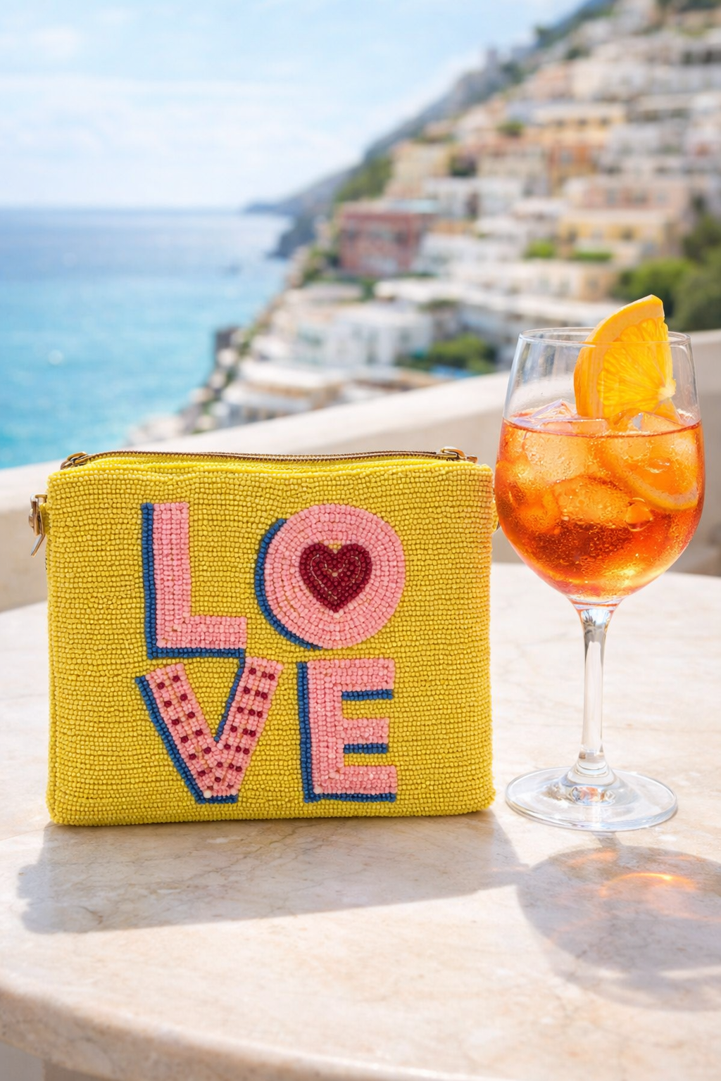 Πορτοκαλί τσάντα με την επιγραφή “Love”, που χαρίζει ζωντάνια και παιχνιδιάρικο χαρακτήρα στις εμφανίσεις. Κεντημένη με χάντρες για εντυπωσιακό αποτέλεσμα, είναι ιδανική για βόλτες, διακοπές ή καθημερινή χρήση, προσθέτοντας στυλ και χρώμα σε κάθε σύνολο.