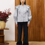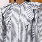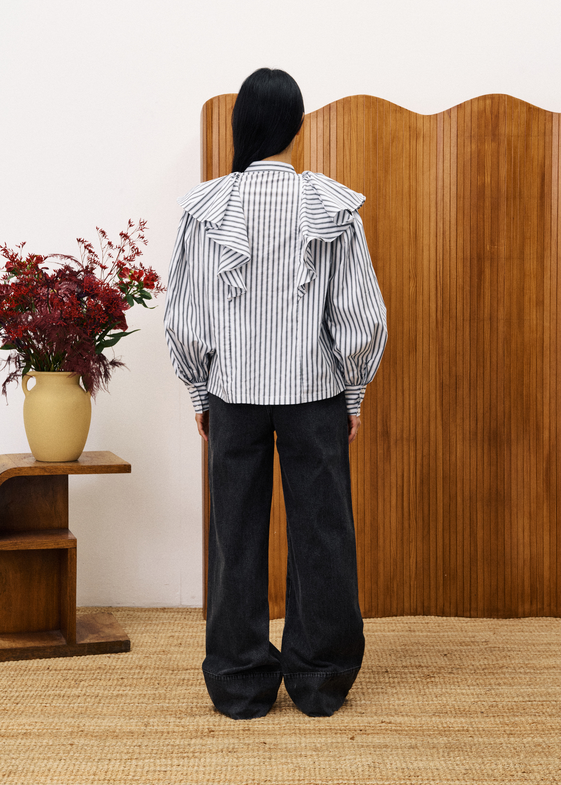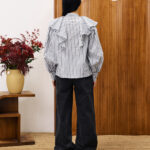 Ριγέ πουκάμισο με φαρδιά μανίκια και ruffles στους ώμους