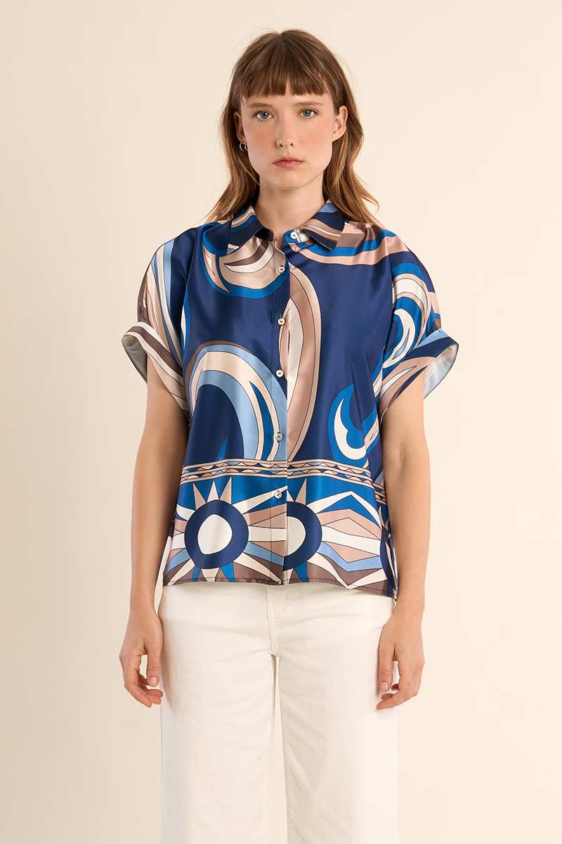 Βαμβακερό πουκάμισο με κεντητή διακόσμηση στα μανίκια