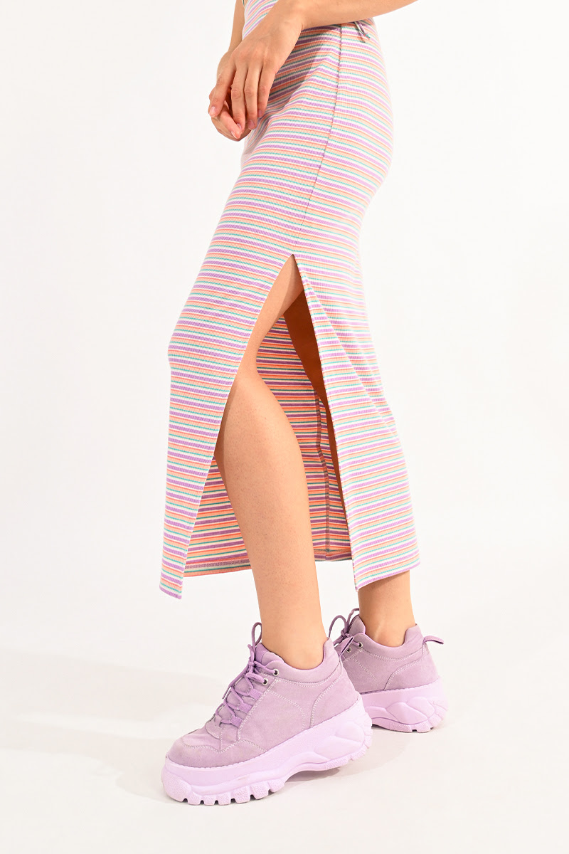 Ριγέ Λιλά Γυναικεία Φούστα – LILI SIDONIO