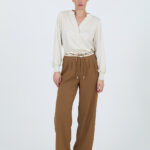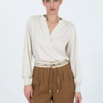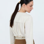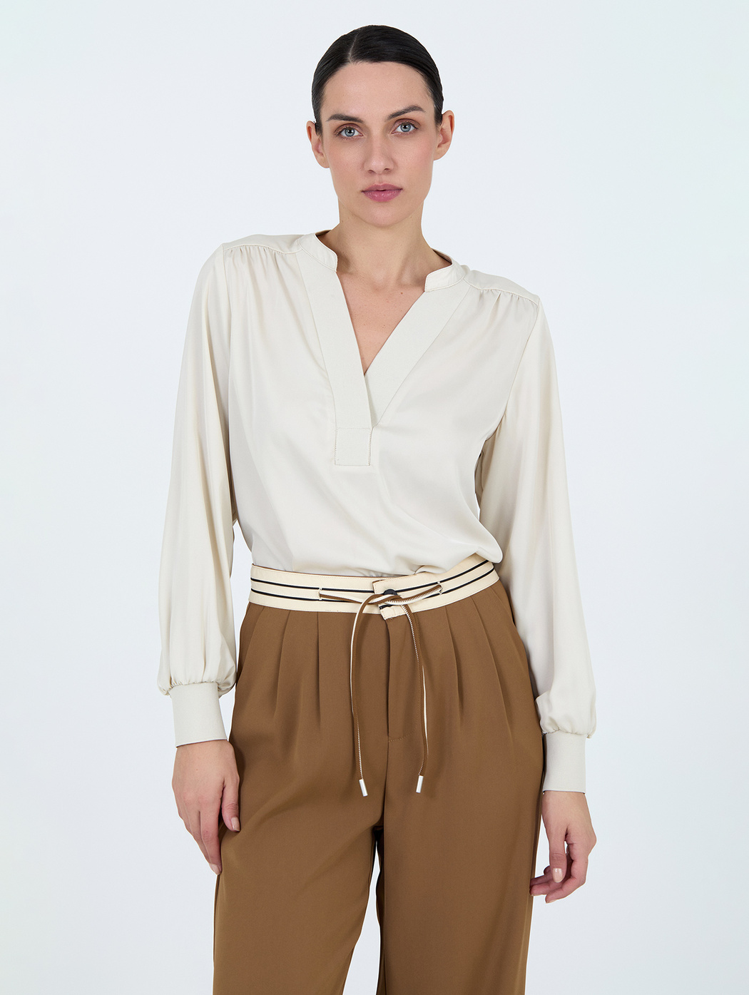 Μακρυμάνικη σατεν μπλούζα με V λαιμόκοψη