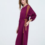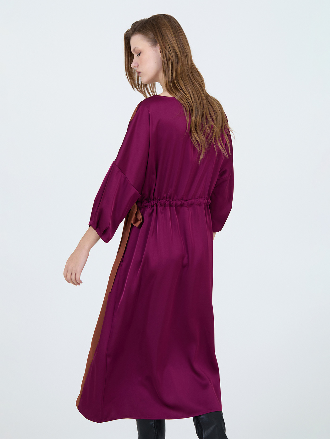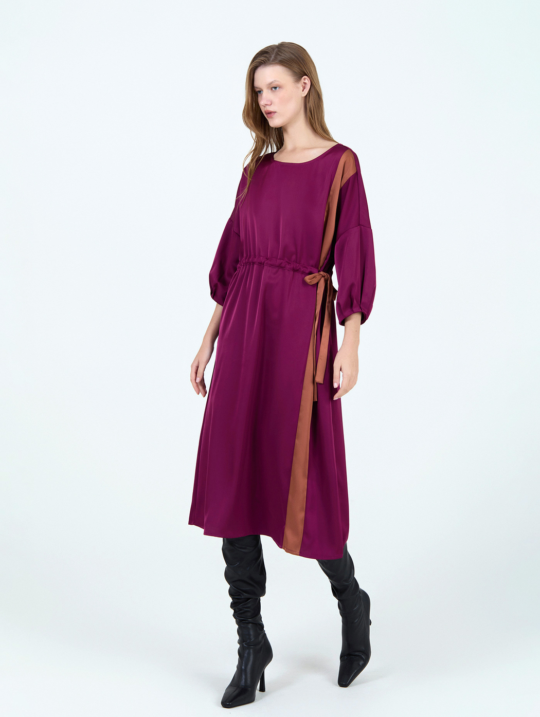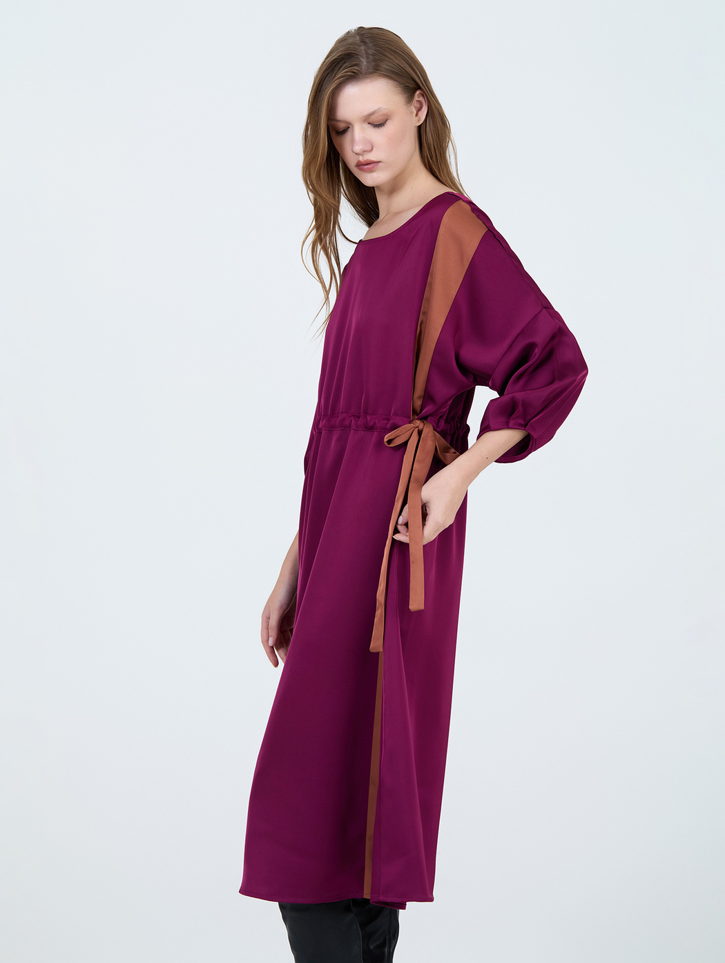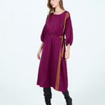 Μακρυμάνικο midi φόρεμα με δέσιμο στη μεση