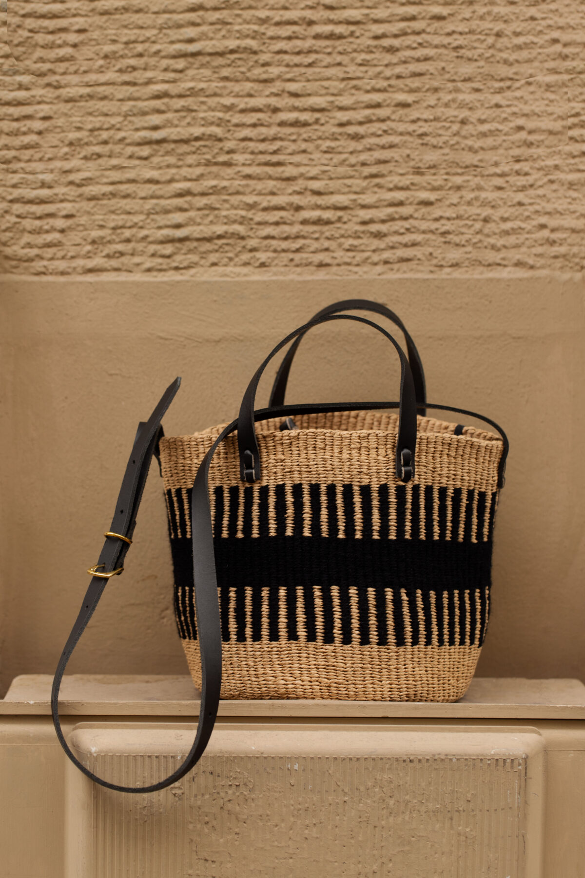 Η τσάντα καλάθι είναι ένα κομψό και βιώσιμο αξεσουάρ σχεδιασμένο τόσο για λειτουργικότητα όσο και για κομψότητα. Χειροποίητο με φροντίδα, αυτό το μικρό καλάθι διαθέτει ένα μοναδικό μοτίβο μαύρης πλέξης που προσθέτει μια πινελιά μοντέρνας κομψότητας στον διαχρονικό σχεδιασμό του.
