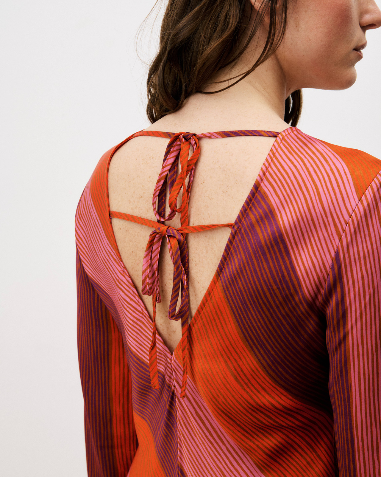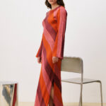 Μακρύ φόρεμα με φαρδιές ρίγες και ανοιχτή πλάτη με δέσιμο