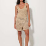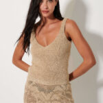 Γυναικείο χρυσό πλεκτό καλοκαιρινό τοπ που χαρίζει κομψό και διακριτικά λαμπερό χαρακτήρα στο ντύσιμο. Ιδανικό για casual ή βραδινές εμφανίσεις, φοριέται άνετα με φούστες, παντελόνια ή σορτς, δημιουργώντας ένα ολοκληρωμένο και προσεγμένο καλοκαιρινό σύνολο.