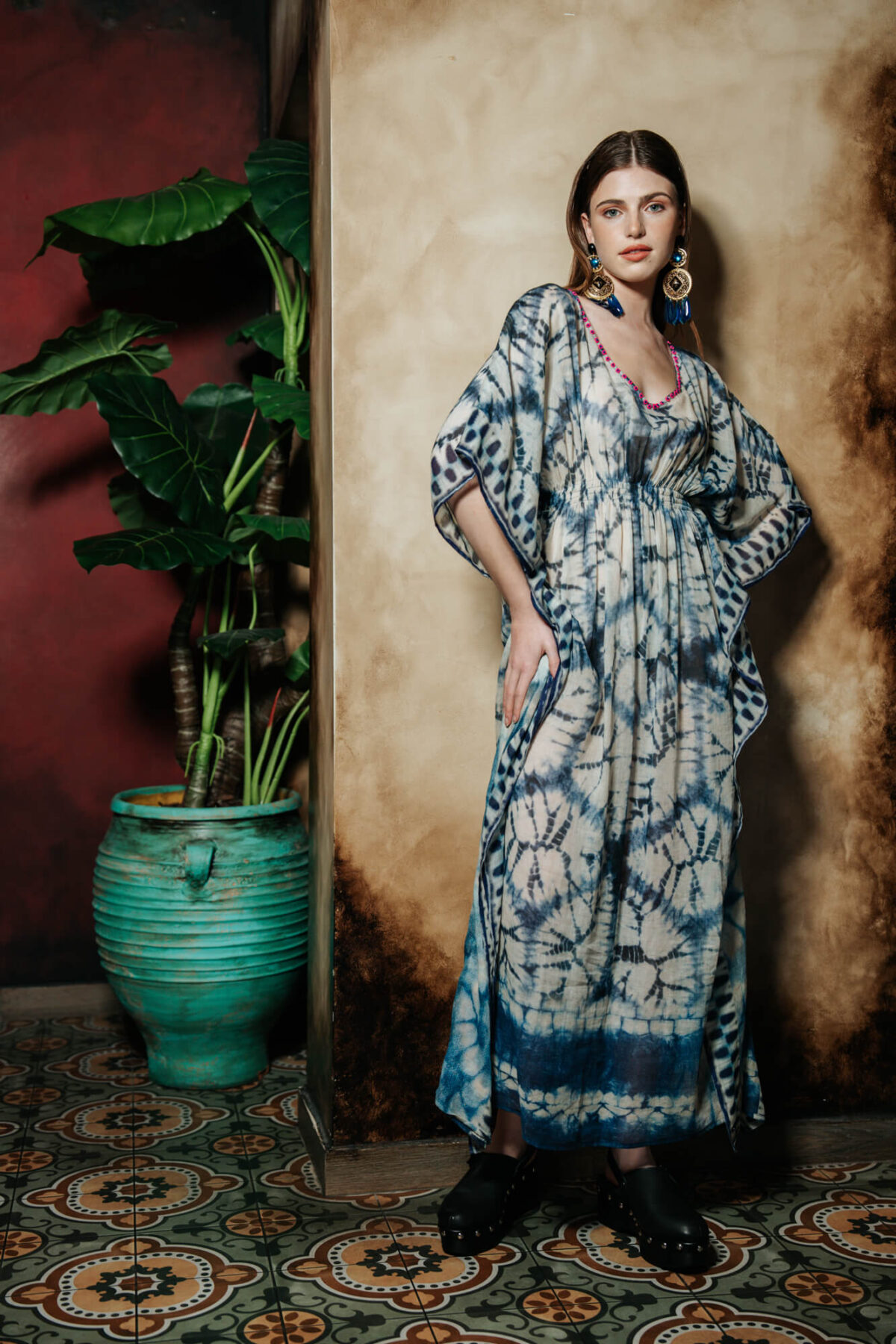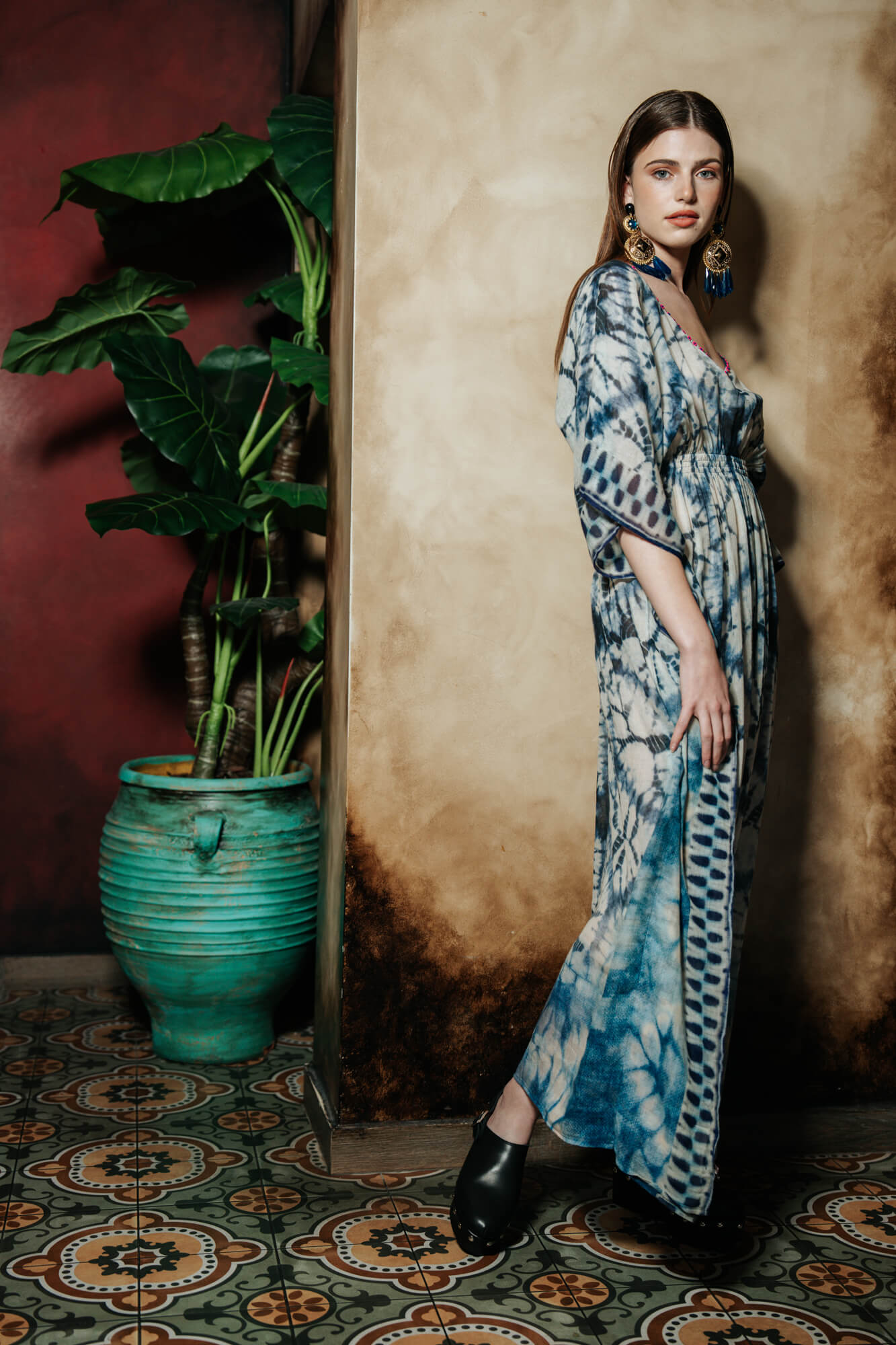 Μάξι καφτάνι ombre σε μπλε αποχρώσεις