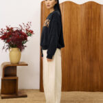 Denim φαρδύ παντελόνι με ραφές σε αντίθεση