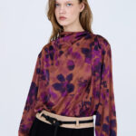 Σατινέ μακρυμάνικη εμπριμέ μπλούζα