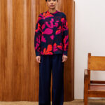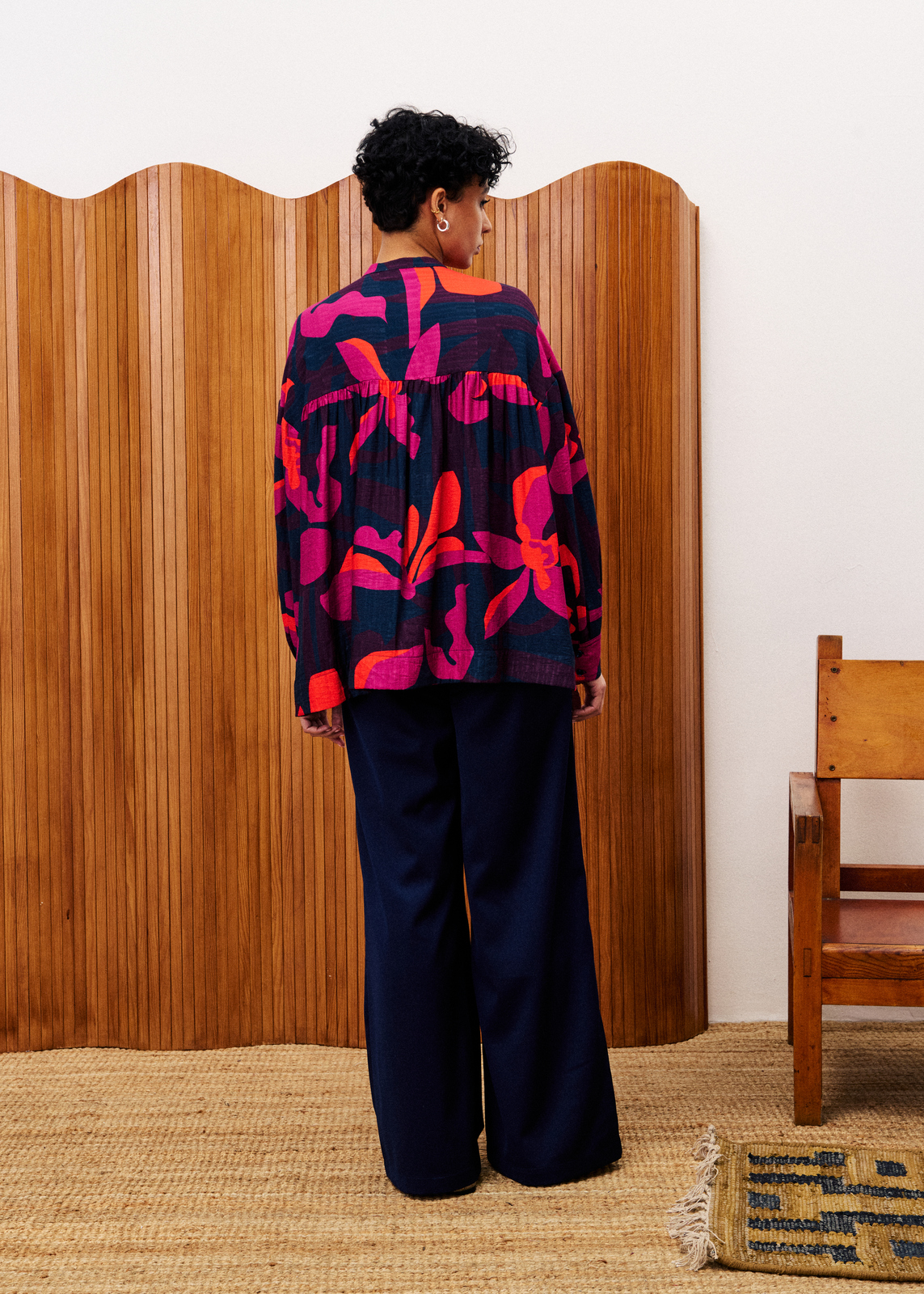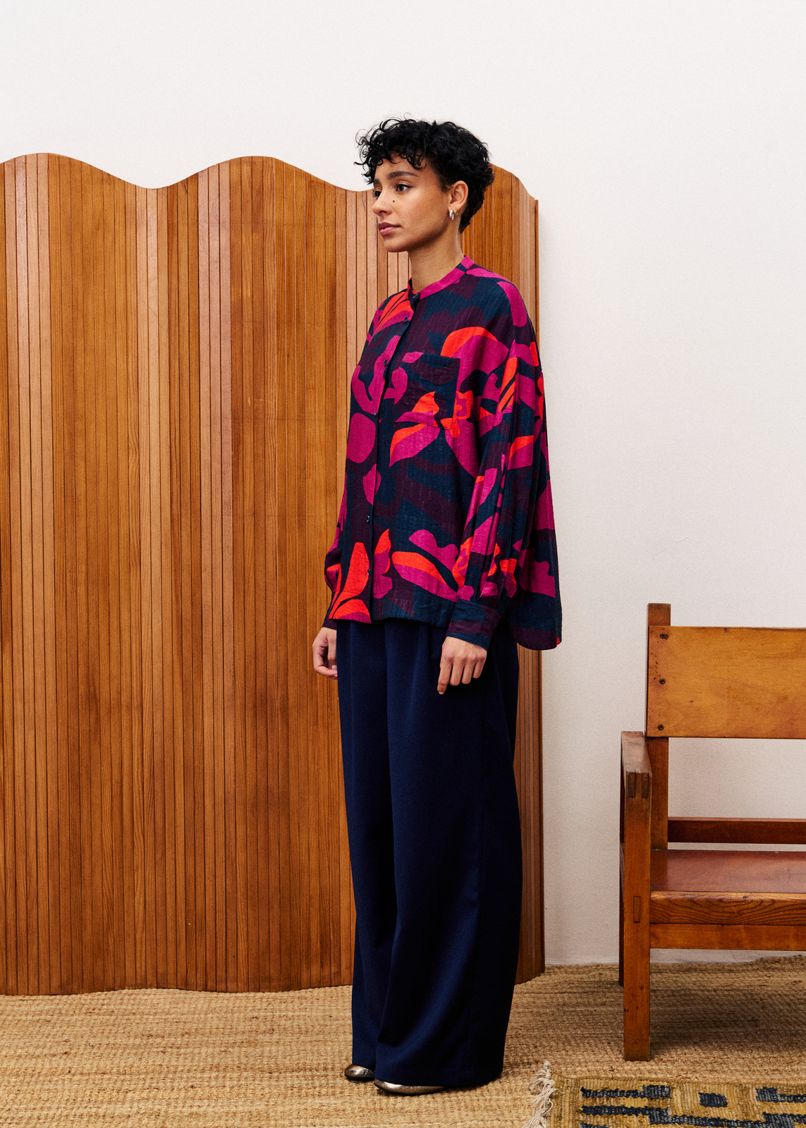 Εμπριμέ φαρδύ πουκάμισο με χαμηλό γιακα