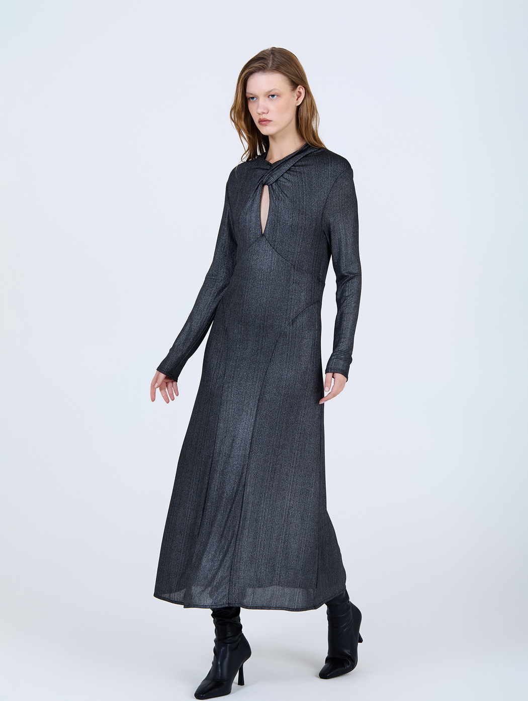 Ριπ μακρυ φόρεμα με δέσιμο και άνοιγμα στο ντεκολτέ