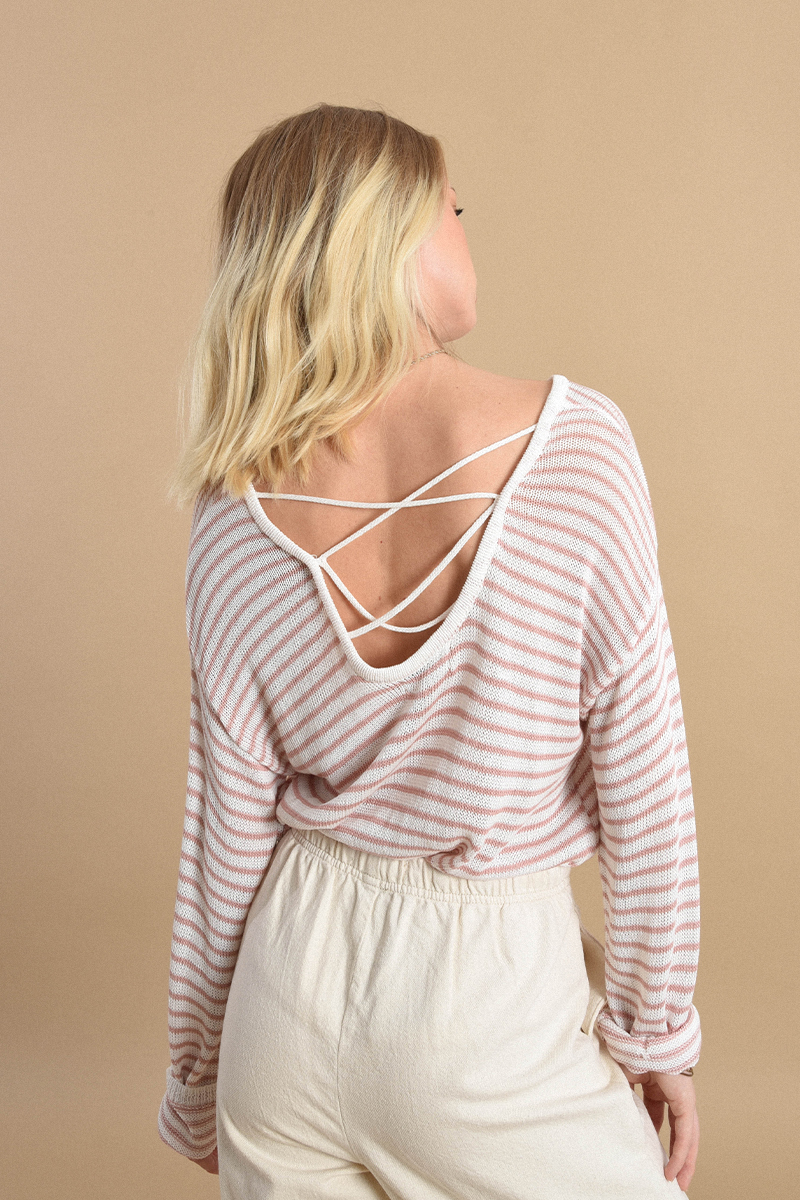 Πλεκτή Ριγέ Γυναικεία Μπλούζα με Άνοιγμα στην Πλάτη – MOLLY BRACKEN