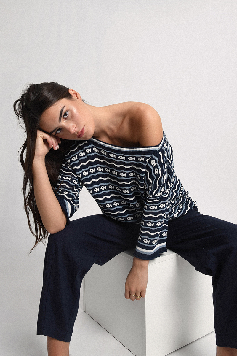 Γυναικεία Μπλούζα με Ρίγες Navy Blue και Σχέδιο Ψαράκια – MOLLY BRACKEN