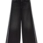 Ψηλόμεσο ξεβαμένο μαύρο denim παντελόνι με ρίγες στο πλάι