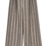 Ψηλόμεσο φαρδύ παντελόνι με πιέτες και κουμπι, με ύφασμα ψαροκόκαλο
