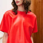 Κοντομάνικη μπλούζα δερματίνη